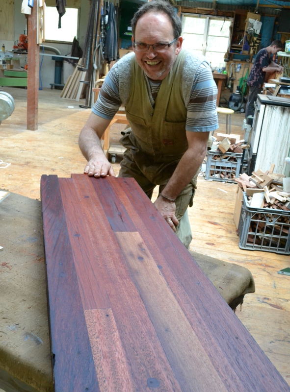 all timber was collected by the owner, overhead doors are recycled from the old kitchen.