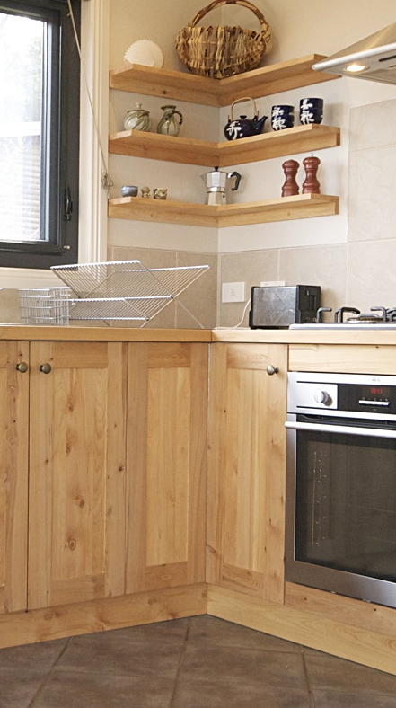 painted tas oak doors, oiled wattle tops
